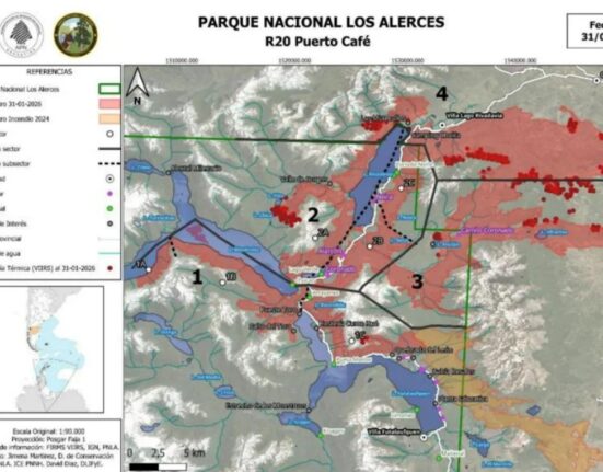 El fuego permanece activo en Los Alerces y la superficie afectada ya alcanza las 16.765 hectáreas