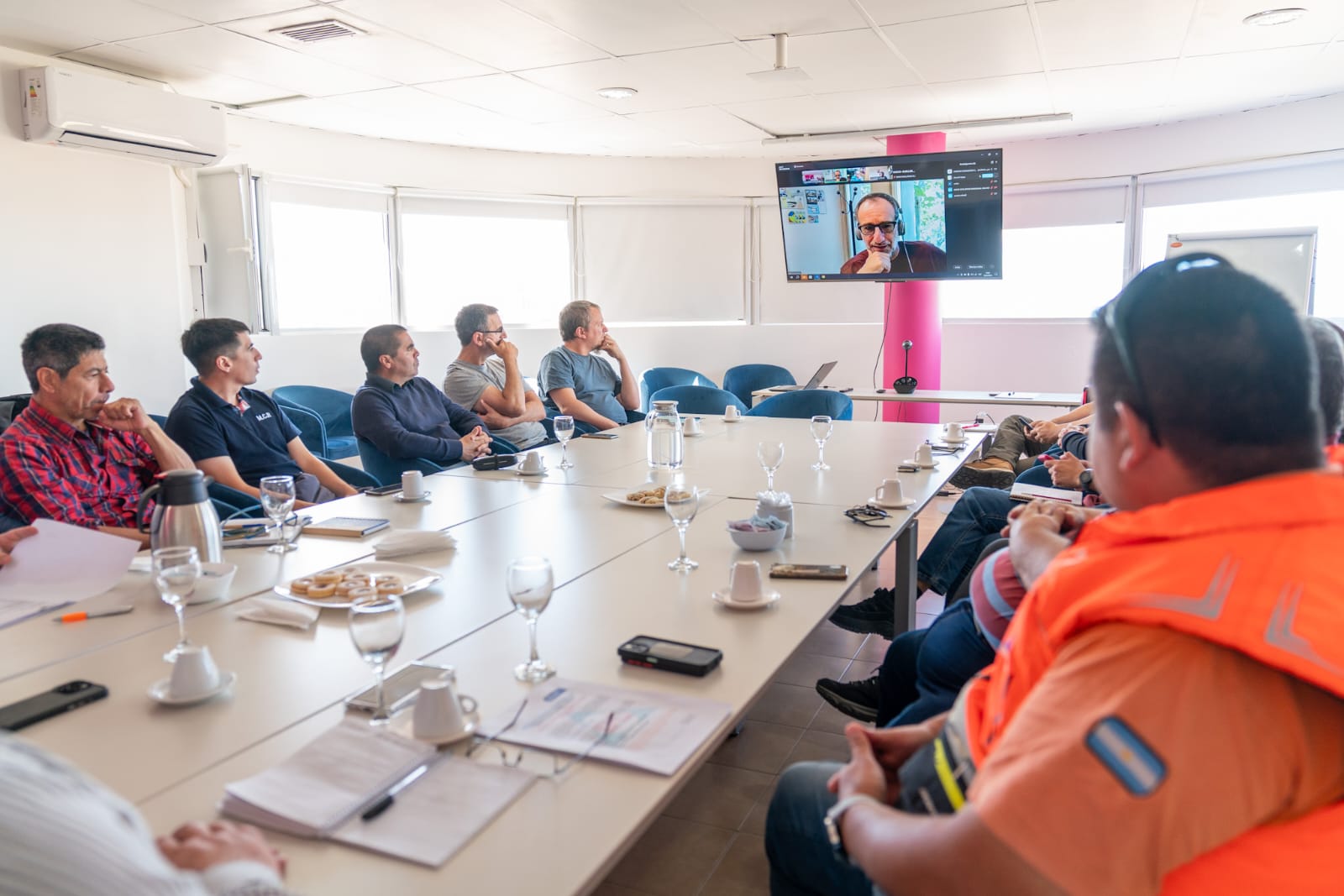 Del encuentro participaron el presidente de la Agencia Comodoro Conocimiento Rubén Zárate; el secretario de Infraestructura, Obras y Servicios Públicos, Fernando Ostoich; representantes de la UNPSB y especialistas de las empresas IATASA y SRK, responsables de la consultoría técnica vinculada al deslizamiento registrado en el Cerro Hermitte.