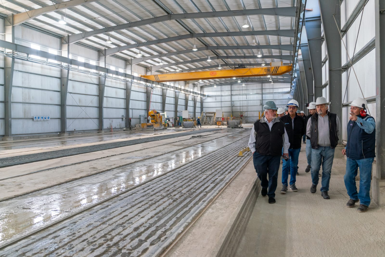 Durante la visita, técnicos de la empresa presentaron un proyecto que propone viviendas sociales construidas con bloques y viguetas de hormigón fabricados en Comodoro, utilizando además mano de obra local.